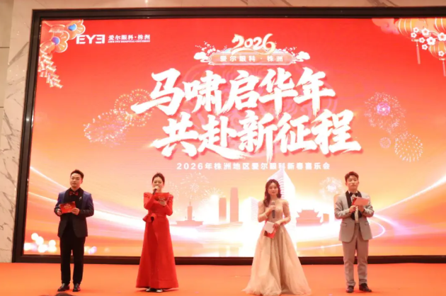 岁序更替,华章日新。2026年2月10日,株洲地区爱尔眼科医院隆重举办“马啸启华年 共赴新征程”新春喜乐会。全院同仁共聚一堂,辞旧岁、话耕耘,回顾2025年的奋斗历程与工作成效;迎新春、展愿景,谋划部署新一年的发展目标与前进方向。这场年度相聚,礼敬过往,更奔赴新程,在团结奋进的氛围中,汇聚起共赴光明的坚定力量。