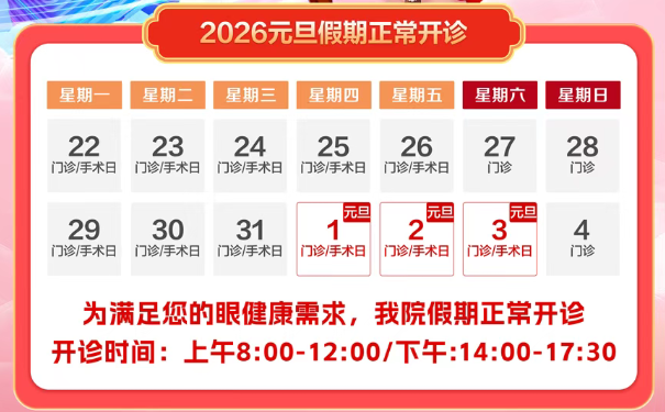 值此元旦佳节,株洲地区爱尔眼科医院向全体市民致以诚挚祝福:愿您新岁顺遂,万事胜意,眼底有光,安康常伴!节日休憩,眼健康守护不打烊——为满足市民假期就诊需求,医院元旦假期正常接诊,专业诊疗与贴心服务始终在线。